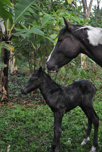Diva is too young to be a mother at age 3 1/2. Still in Costa Rica the believe is that this does not matter, not knowing that neither the education of a mare is finished nor physically she is grown up. |