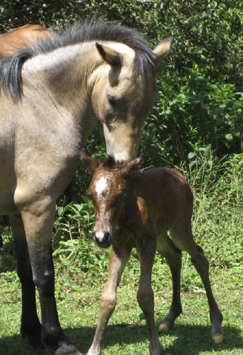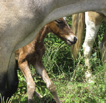 | Pitufa - all at a sudden she was there in front of our house. Christmas 2003. Her mother is a very little horse and her father a Shetland Pony Pinto. She was an accident in the field. She turned out great. | |